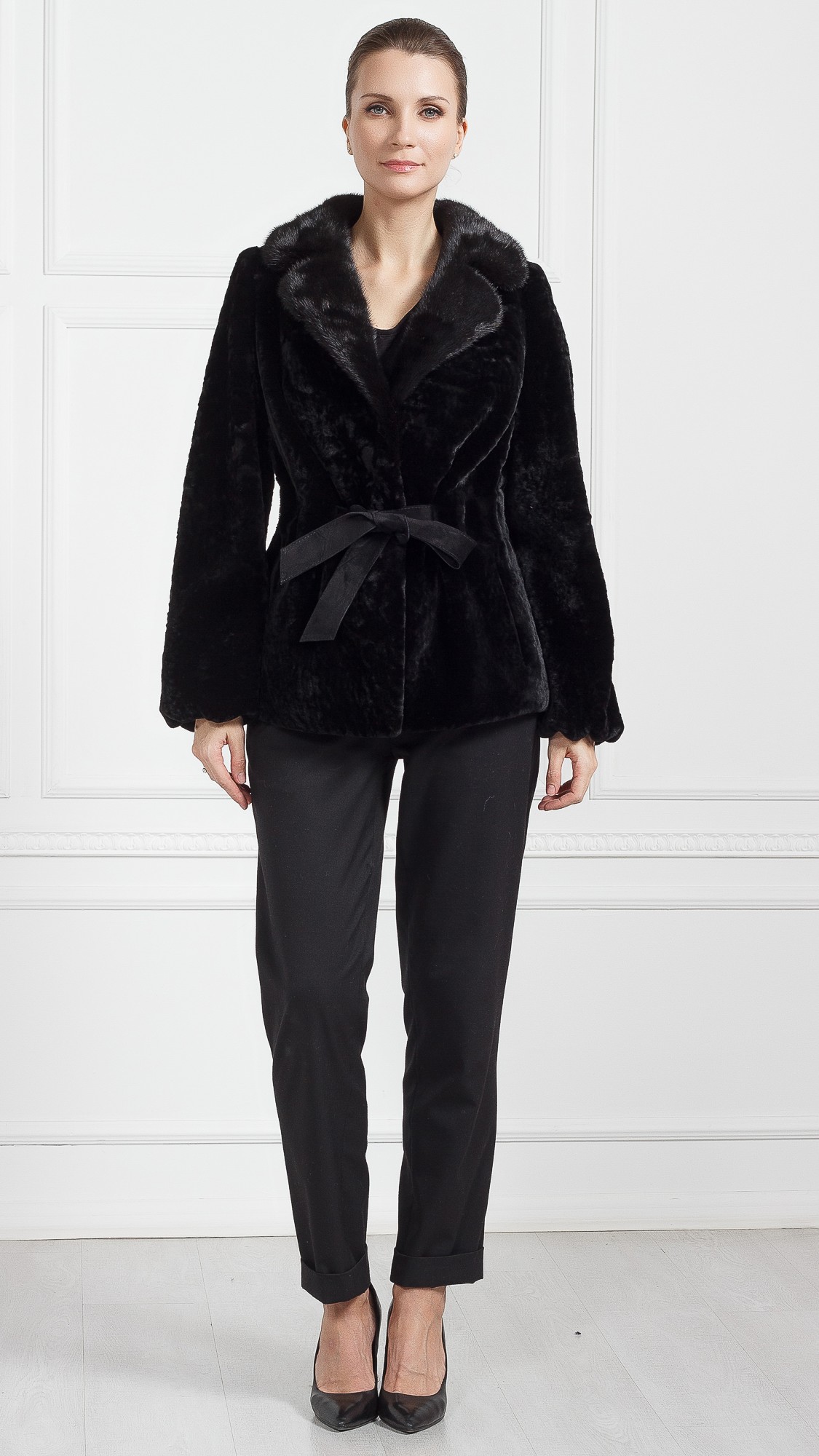 Куртка из овчины, отделка норка